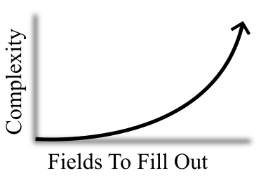Salesforce makes it easy to create fields to capture data. Capturing data is great, but be careful not to go overboard! Too few fields means you don’t have the data you need to make informed decisions, but too many fields increase complexity. Where is the balance between capturing enough data and too much data? Let’s find out! Complexity Scales Exponentially Adding required fields exponentially increases complexity. Don’t be fooled; doubling your required fields on a page layout more than doubles the complexity due to the following reasons -